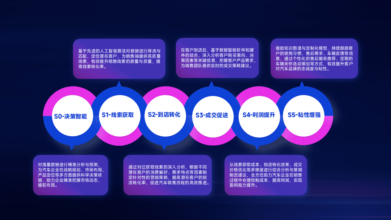 通过拓宽潜在客户来源、、、优化线索分配并提高到店转化率,,以增强销售效率。。同时,,,利用线索数据不断优化分析模型,,,有效提升转化率,,,扩大营销影响力。。。